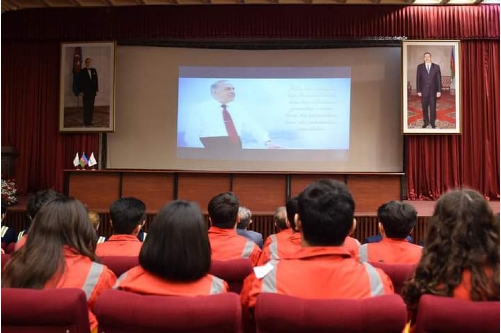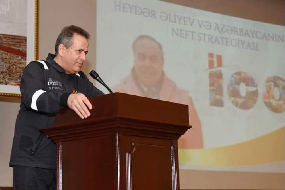 Daha sonra “BOS Shelf” MMC-nin baş direktor vəzifəsini icra edən Nazim Hüseynov Ulu Öndərin yeni neft strategiyası haqqında mühazirə ilə çıxış edib.