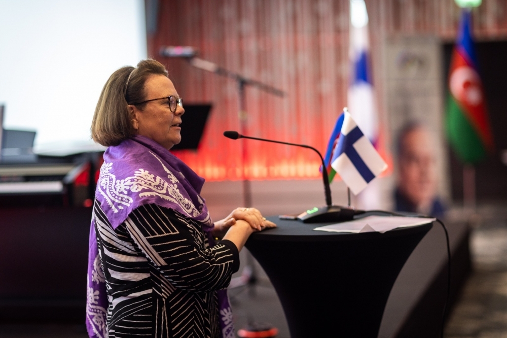 Finlandiyanın ölkəmizdəki səfiri Kirsti Narinen Azərbaycandan bir an əvvəl geri döndüyünü qeyd edərək, bu dövr ərzində Heydər Əliyevin xatirəsinə həsr olunan ikinci tədbirdə iştirak etdiyini və onun Azərbaycan xalqı üçün gördüyü işlərlə tanış olduğunu bildirib. Heydər Əliyevi uzaqgörən siyasətçi kimi qiymətləndirən Kirsti Narinen, Ulu Öndərin Azərbaycanın neft strategiyası istiqamətində atdığı addımları yüksək qiymətləndirib.