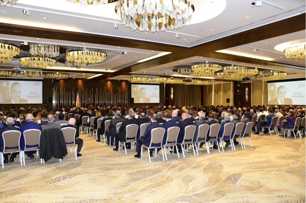 Konfransda Xətai rayon İcra Hakimiyyətinin başçısı Rafiq Quluyev müstəsna xidmətləri ilə əbədilik qazanan Ümummilli Lider Heydər Əliyevin böyük, mənalı və şərəfli həyat yolu, zəngin və çoxşaxəli irsi haqda geniş məruzə ilə çıxış edib.