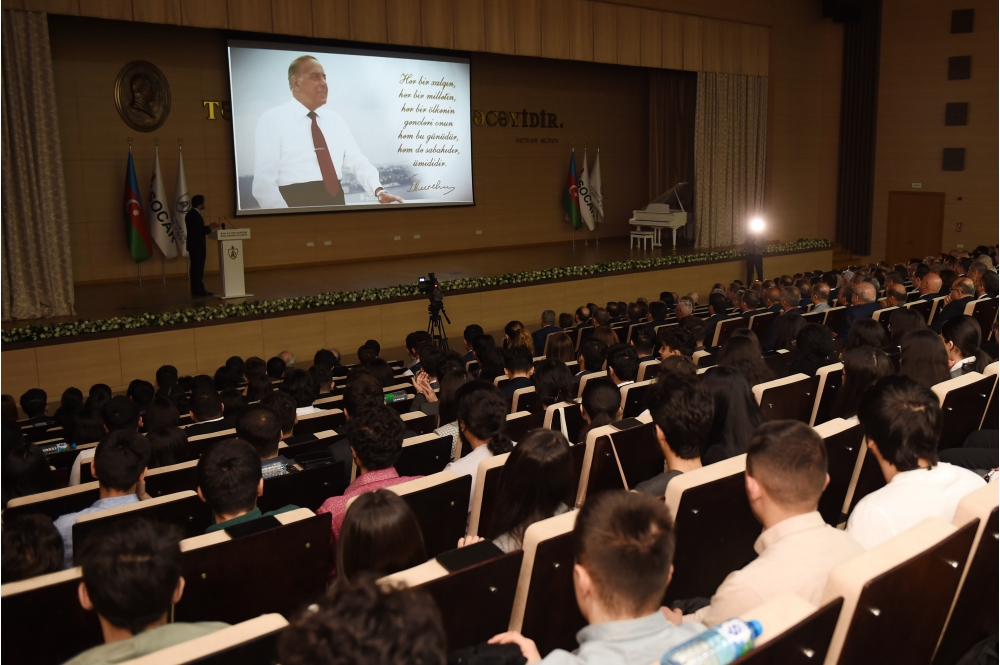 Ümummilli Liderin hər zaman Azərbaycan gəncliyinə böyük ümidlər bəslədiyini qeyd edən rektor dahi şəxsiyyət Heydər Əliyevin mənalı həyat yolunun və çoxşaxəli fəaliyyətinin hər bir gənc üçün əsl nümunə olduğunu bildirib.