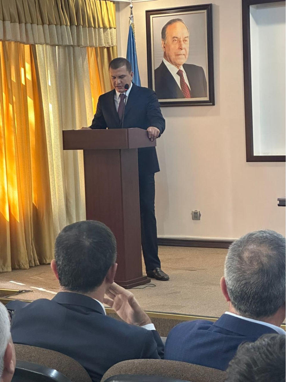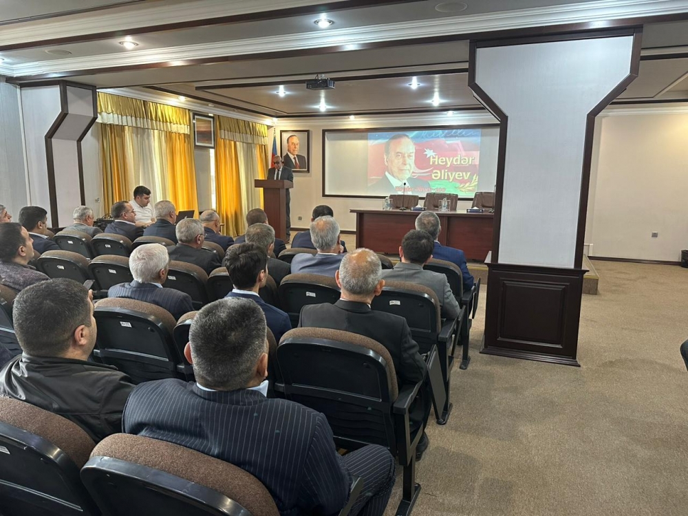İnsan Resursları Departamentinin rəisi Sübhan İsmayılov Heydər Əliyevin 20-ci əsrin ikinci yarısında, 21-ci əsrin əvvəllərində dünya siyasətinin ən nəhəng fiqurlarından olduğunu söyləyib. O, Ümummilli Liderimizin birinci dəfə siyasi hakimiyyətə gələndə Azərbaycanın sosial-iqtisadi, digər göstəricilərinə görə SSRİ respublikaları arasında yalnız Tacikistandan öndə - 15 respublika arasında 14-cü yerdə qərarlaşdığını, geridə qalmış aqrar respublika olduğunu bildirib. Heydər Əliyevin titanik əməyi nəticəsində respublikamızın tezliklə ən inkişaf etmiş respublikalar sırasına çıxarıldığını diqqətə çatdırıb. Onun hakimiyyət illərini Azərbaycan üçün qızıl dövr, mədəniyyətimizin əsl intibahı dövrü adlandırıb.
