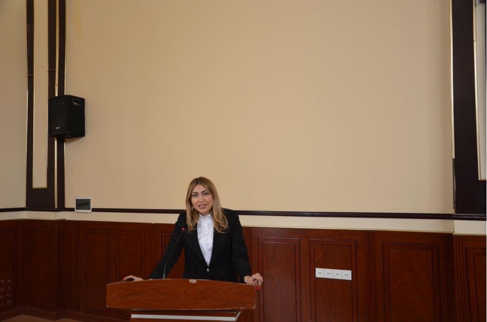 Azərbaycanın Baş Prokurorluğunun Elm-Tədris Mərkəzinin Prokurorluq işçilərinin fəaliyyətinin qiymətləndirilməsi və peşə hazırlığının təşkili şöbəsinin rəisi Nigar Qələndərli Azərbaycan Prokurorluğunun inkişafında Ulu Öndərin misilsiz xidmətləri haqqında çıxış edib.