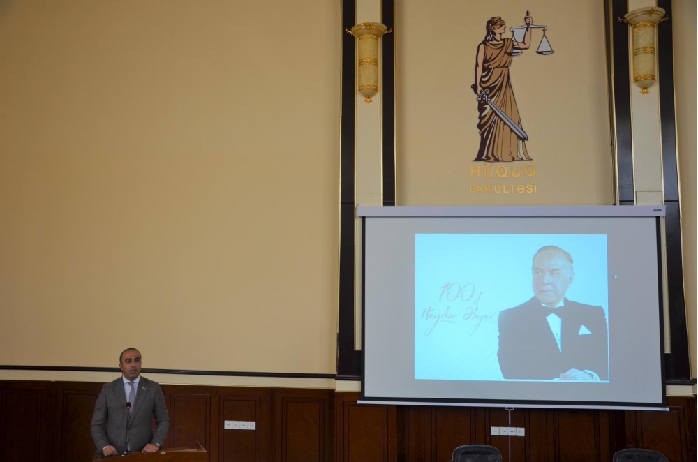Azərbaycan Vəkillər Kollegiyasının sədri Anar Bağırov Bakı Dövlət Universitetinin Hüquq fakültəsində Azərbaycan xalqının Ümummilli Lideri Heydər Əliyevin 100 illiyinə həsr edilmiş “Ulu Öndər Heydər Əliyev hüquqi islahatların banisidir” mövzusunda konfransda iştirak edib.