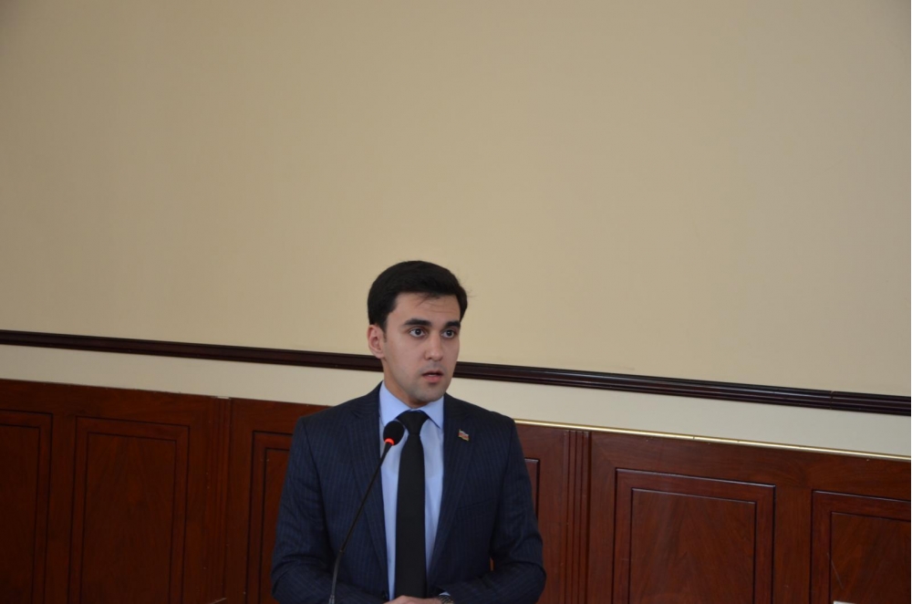 Daha sonra “Heydər Əliyev məhkəmə-hüquq sisteminin qurucusudur” mövzusunda çıxış edən Azərbaycanın Milli Məclisinin deputatı Bəhruz Məhərrəmov Ulu Öndərin məhkəmə-hüquq islahatlarının respublikamızın müasir və demokratik əsaslarla inkişafında mühüm rolunu xüsusi vurğulayaraq bildirib ki, Heydər Əliyev yaxşı başa düşürdü ki, dövlətin inkişafı məhkəmə hakimiyyətinin inkişafından asılıdır. Çıxışının davamında Heydər Əliyev ideologiyasının Vətən müharibəsində Müzəffər Ali Baş Komandan tərəfindən davam etdirilməsini xüsusi qeyd edən B.Məhərrrəmov tələbələrə üzünü tutaraq onları Ulu Öndəri ideal seçərək hər zaman Azərbaycan dövlətinə xidmət etməyə çağırıb.