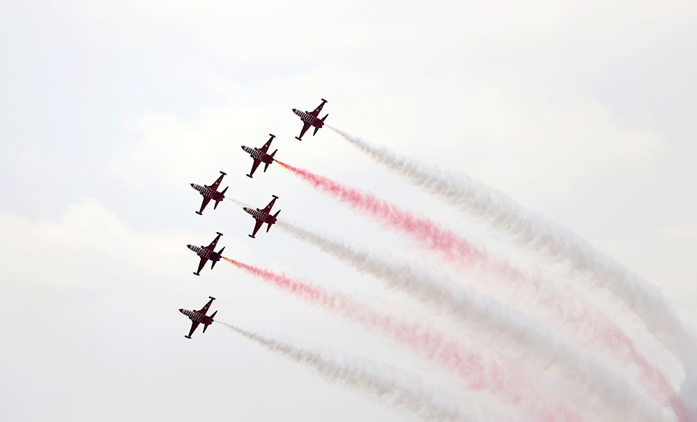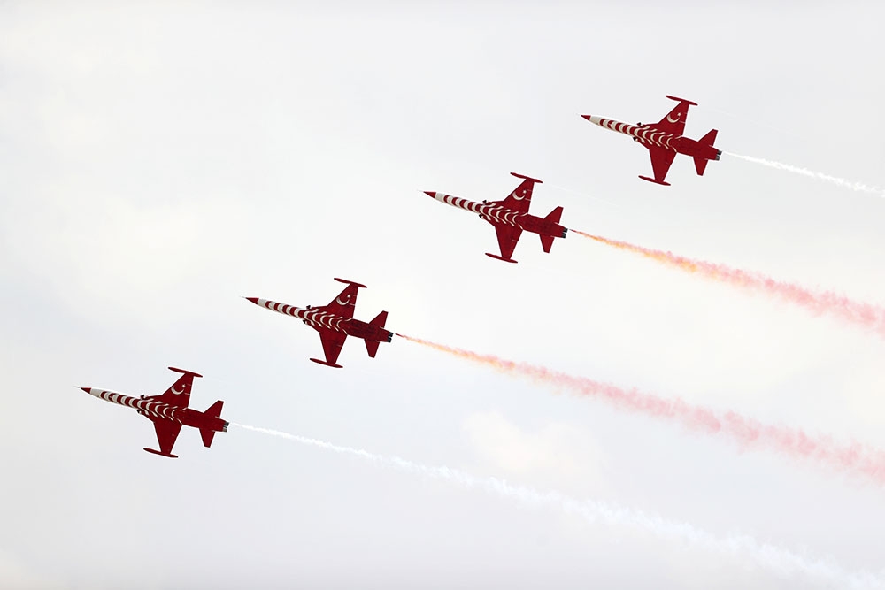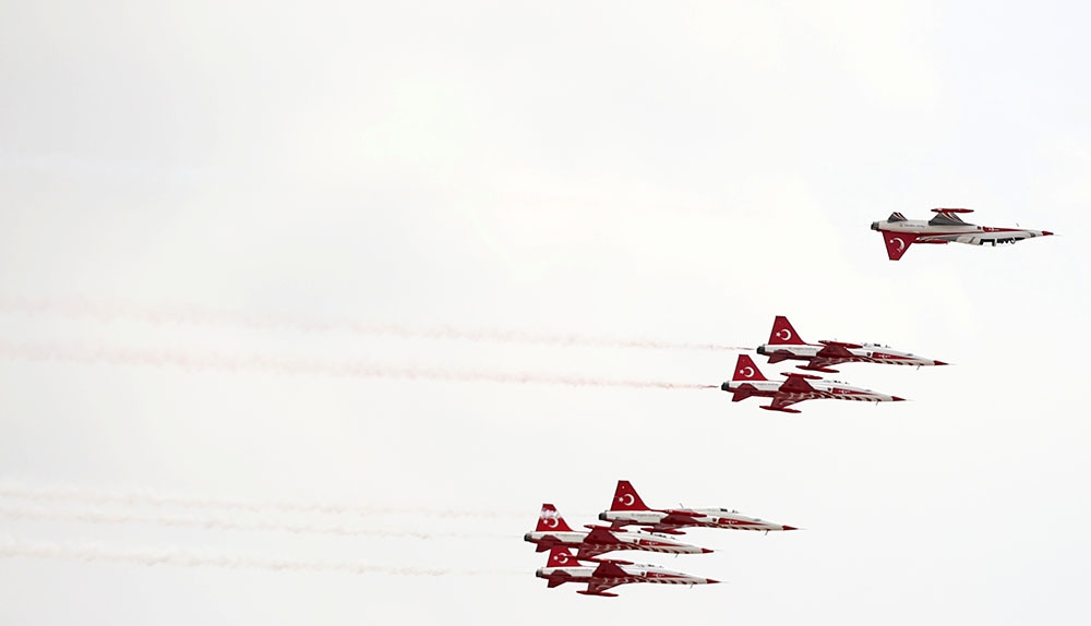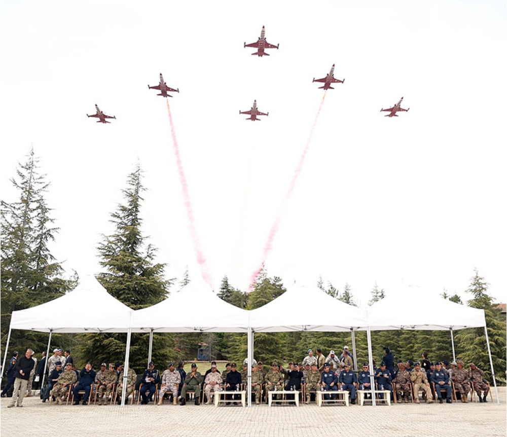 “Yüksək Səviyyəli Müşahidəçi Günü”ndə iştirak edən qonaqlar təlimlərin praktiki hissəsini, Türkiyə Hərbi Hava Qüvvələrinin “Solo Türk” aviaqrupuna daxil olan F-5 tipli hərbi təyyarələrin nümunəvi uçuşlarını izləyiblər.