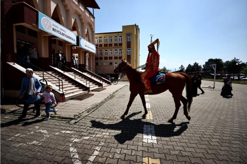 Düzce vilayətində Muay tay millisinin üzvü idmançısı Muhammet Bişgin seçki məntəqəsinə yeniçəri paltarı geyinərək gedib. Beyciler Məhəlləsindəki evindən yeniçəri paltarı ilə çıxan 33 yaşlı Bişgin qeydiyyatda olduğu məntəqəyə atıyla gəlib.