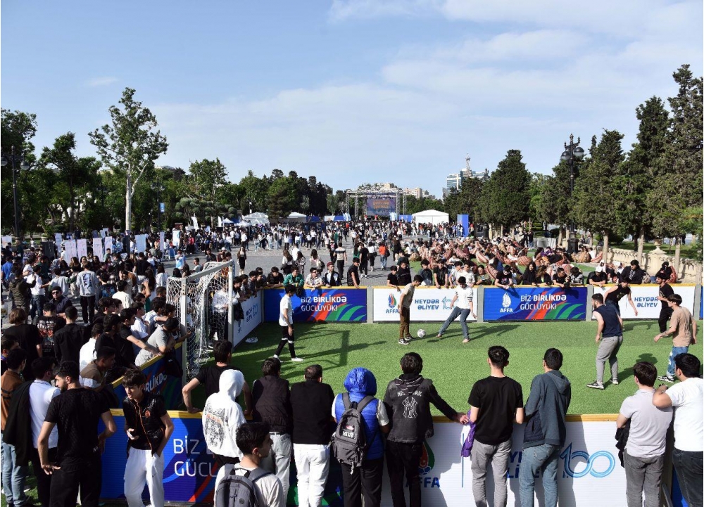 “Heydər Əliyev İli” çərçivəsində Ulu Öndərin anadan olmasının 100 illik yubileyi münasibəti ilə həyata keçirilən festivalda gün boyunca minlərlə gəncin iştirakı ilə Müstəqil Azərbaycan dövlətinin qurucusu, dahi siyasətçi, Ümummmilli Liderə həsr edilən “Heydər Əliyev və Azərbaycan” guşəsində sərgi təşkil olunub, gənclərə onun həyat və fəaliyyətindən bəhs edən video süjetlər nümayiş edilib.