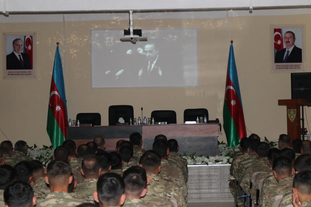 Mərasimdə çıxış edən Hərbi prokurorun böyük köməkçisi, mətbuat xidmətinin rəhbəri, baş ədliyyə müşaviri Firad Əliyev və Hərbi Prokurorluğun Kriminalistika və informasiya texnologiyaları idarəsinin rəisi, ədliyyə polkovniki Emil Kərimov əvvəlcə Baş prokuror Kamran Əliyevin və Hərbi prokuror Xanlar Vəliyevin salamlarını şəxsi heyətə çatdırdılar. Bundan sonra həmin şəxslər, eləcə də general-mayor Münasib Babayev, Qubadlı hərbi prokuroru, ədliyyə polkovnik-leytenantı Elşən Mürsəlov, polkovnik-leytenant Rəşad Gülməmmədov, baş leytenant Ömər Muradlı və digər şəxslər müstəqillik yolumuzu və firavan gələcəyimizi nurlandıran, millətini zamanın sərt sınaqlarından yüksək məharətlə çıxararaq, hər bir çətin vəziyyətdən ən düzgün çıxış yolu tapan dahi tarixi şəxsiyyət Heydər Əliyevin şərəfli və mənalı ömründən, çoxşaxəli və zəngin fəaliyyətindən, ölkəmizin qüdrətlənməsində, xalqın rifahının yüksəldilməsində müstəsna xidmətlərindən və dünya siyasətinə verdiyi töhfələrdən bəhs ediblər.
