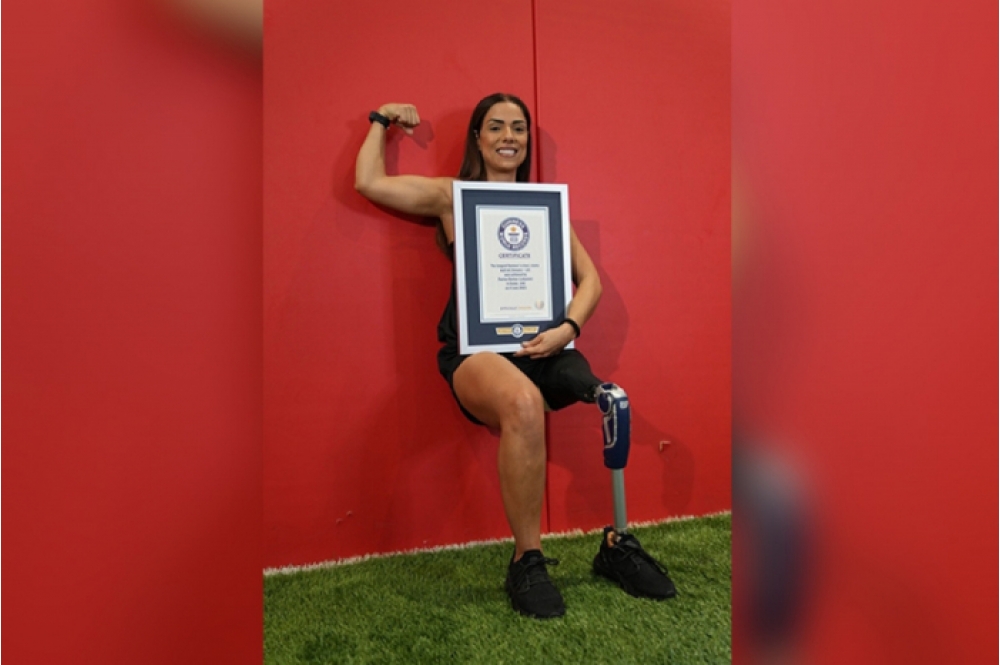 Bir ayağı amputasiya olunmuş qadın “divara söykənərək uzunmüddətli oturma” hərəkəti üzrə “Ginnesin Rekordlar Kitabı”na düşüb.
