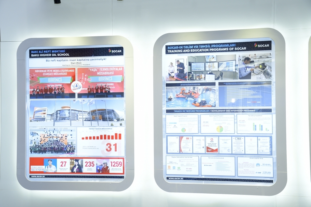 Stenddə, həmçinin SOCAR-ın elmi-tədqiqat, rəqəmsallaşma istiqamətlərindəki fəaliyyəti, aldığı mükafatlar, nanotexnologiyalar, təlim və təhsil proqramları barədə məlumatlar öz əksini tapıb.