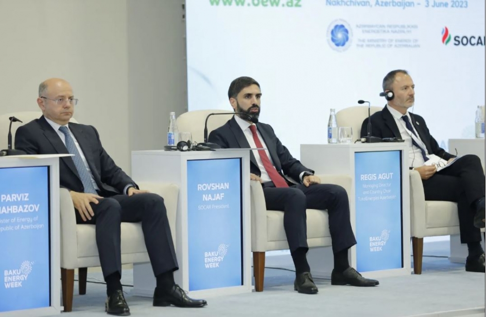 “TotalEnergies” şirkətinin Azərbaycan üzrə icraçı direktoru Regis Agut çıxışında Naxçıvan və Şərqi Zəngəzur regionları da daxil olmaqla Azərbaycanın zəngin bərpa olunan enerji potensialına malik olduğunu bildirib. Regis Agut “TotalEnergies”in iqlim dəyişikliyi ilə mübarizə çərçivəsində yaşıl enerji istehsalının artırılması kimi ümumi hədəflərinə töhfə vermək məqsədilə Azərbaycanla potensial günəş və külək enerjisi layihələri üzrə tərəfdaşlıq etməyə hazır olduqlarını ifadə edib.