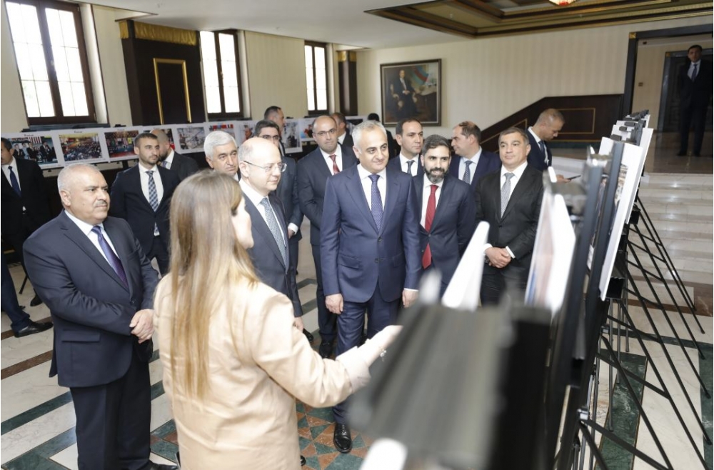 Sessiya iştirakçıları muxtar respublikada fəaliyyət göstərən emal və xidmət müəssisələri tərəfindən istehsal olunan məhsulların nümayiş olunduğu stendlərlə tanış olublar.