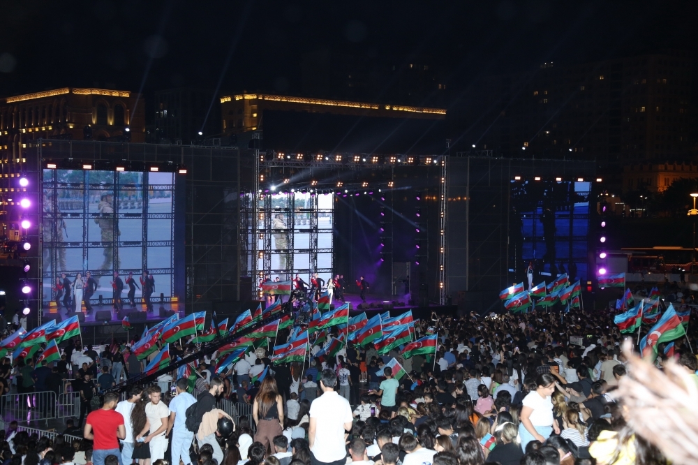 Sonra konsertdə tanınmış müğənnilər və kollektivlər çıxış ediblər. Azərbaycanın məşhur estrada ulduzlarının, sevilən muğam və milli mahnılarımızın ifaçılarının iştirakı ilə keçirilən möhtəşəm qala-konsertdə dillər əzbəri olan, rəngarəng musiqi nömrələri, mahnılar ifa olunub. Konsertə gələn hər kəs bayramı yüksək əhvali-ruhiyyə ilə keçirmək imkanı qazanıb.