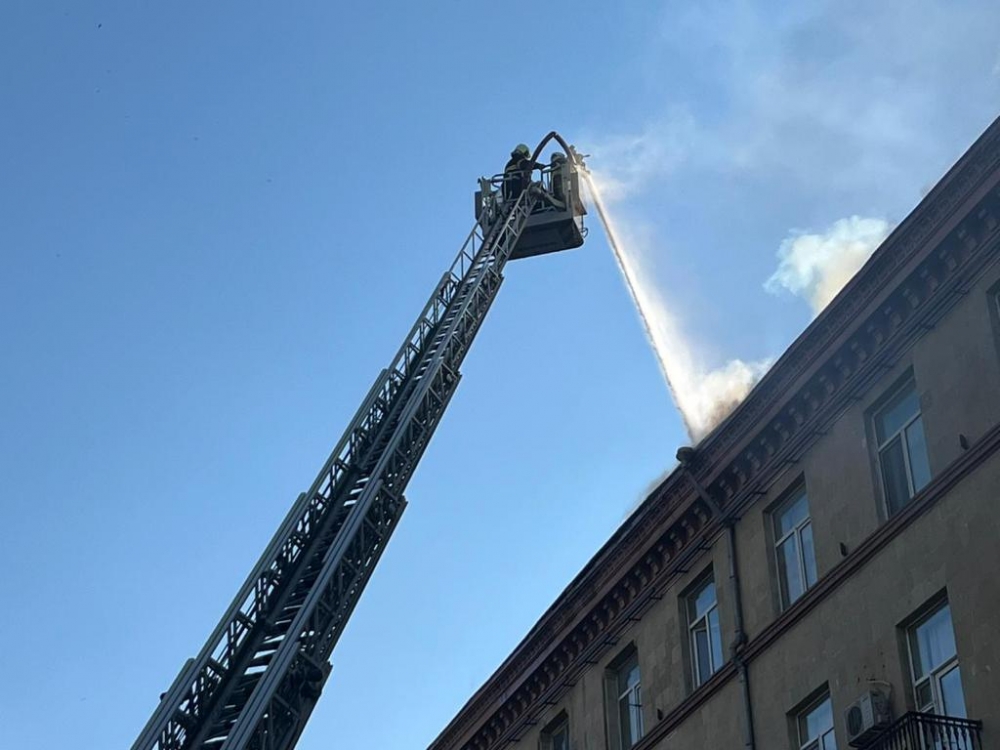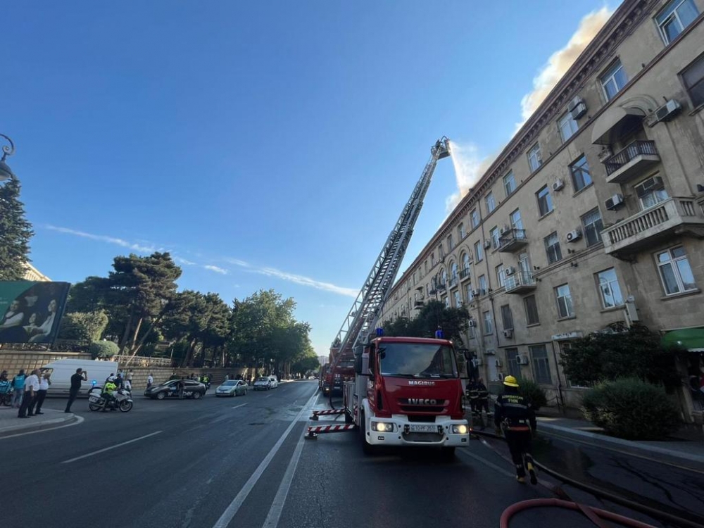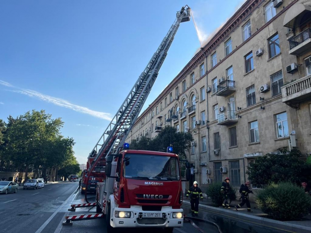 Bakı şəhəri, Yasamal rayonu, İnşaatçılar prospektində yerləşən beşmərtəbəli yaşayış binasının dam örtüyündə yanğın baş verib.