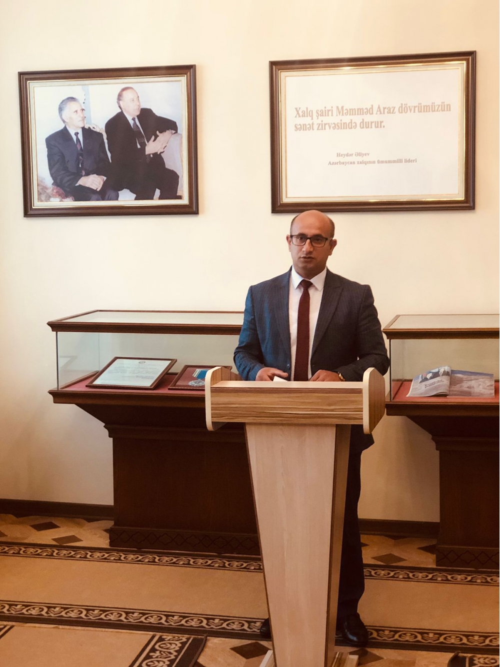 Xalq şairi Məmməd Arazın Ev Muzeyinin fəaliyyəti barədə danışan muzeyin direktoru Əzizə Süleymanova bildirib ki, şairin zəngin bədii irsinin qorunub saxlanılmasında, gələcək nəsillərə ötürülməsində mühüm rola malik olan muzeydə hazırda 1200-ə yaxın eksponat qorunub saxlanılır.