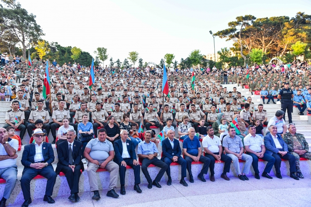 “İki sahil” xəbər verir ki, Xətai rayon İcra Hakimiyyətinin başçısı Rafiq Quluyev, H.Əliyev adına Hərbi İnstitutun rəisi general-mayor Fizuli Salahov, Vətən Müharibəsi Qəhrəmanları Nizami Mövlanov, Zaur Hüseynov, Zaur Quliyev, İlqar Orucov, Dövlət Təhlükəsizlik Xidməti Xətai rayon İdarəsinin rəisi Hümbət Əliyev, şəhid atası, Xalq artisti Əli Nur, əməkdar artist Azad Şükürov, rayonun idarə, müəssisə və təşkilat rəhbərlərinin, şəhid ailələrinin, qazilərin, Milli Müdafiə Universitetinin kursantlarının, ziyalıların və sakinlərin qatıldığı tədbirdə əvvəlcə Azərbaycan Respublikasının Dövlət himni səsləndirilib, torpaqlarımızın ərazi bütövlüyü uğrunda həlak olmuş şəhidlərimizin əziz xatirəsi bir dəqiqəlik sükutla yad edilib.