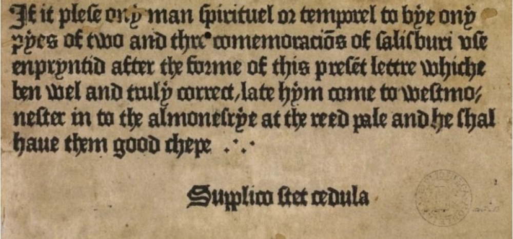 Tarixdə ilk reklam 1477-ci ildə İngiltərədə çap olunub. Bu dua kitabının reklamı idi.