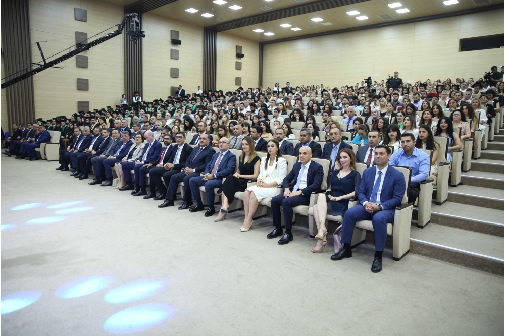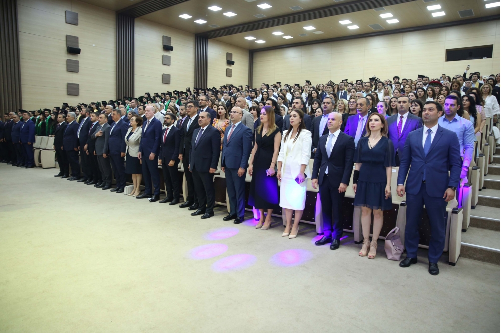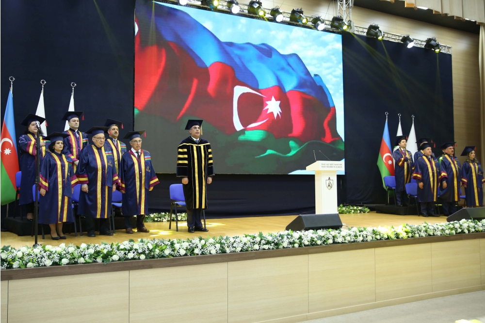 Tədbiri giriş sözü ilə açan BANM-in rektoru Elmar Qasımov əlamətdar gün münasibətilə məzunları təbrik edərək onlara uğurlar arzulayıb. Rektor bildirib ki, 2022/2023-cü tədris ilində Bakı Ali Neft Məktəbinin bakalavriat səviyyəsindən 160, magistratura səviyyəsindən 98 nəfər olmaqla ümumilikdə 258 tələbə məzun olur: “Yüksək bal toplayaraq Ali Məktəbimizin tələbəsi olmuş, burada təhsil aldıqları müddətdə peşəkar kadr kimi yetişmiş bu məzunlar karyera və növbəti təhsil pilləsinə qədəm qoyurlar. Böyük qürurla vurğulamaq istərdim ki, bu il məzun olan tələbələrimiz də uğurları ilə seçilir, SOCAR-ın və ölkənin müxtəlif sənaye müəssisələrində, xarici şirkətlərdə, özəl və dövlət qurumlarında çalışır, dünyanın nüfuzlu universitetlərinə qəbul olur, təqaüd qazanırlar. Bu il Bakalavriat səviyyəsindən məzun olan 160 nəfərin 54 %-i işləyir, 33 %-i nüfuzlu xarici universitetlərdə təqaüdlə təhsil alacaq, digərləri iş təkliflərini dəyərləndirirlər. Magistratura səviyyəsindən məzun olan tələbələrin 79 %-i çalışır. Məzunların 21 nəfəri SOCAR-ın Gənc İstedadlar Proqramının iştirakçısıdır. Əldə etdiyimiz nailiyyətlər bir daha sübut edir ki, möhtərəm Prezidentimiz cənab İlham Əliyevin “Biz neft kapitalını insan kapitalına çevirməliyik” devizinin bariz nümunəsi olan, onun Fərmanı ilə SOCAR-ın strukturunda yaradılan Bakı Ali Neft Məktəbi fəaliyyətə başladığı gündən yüksəkixtisaslı, ingilisdilli peşəkar kadrlar hazırlamaq missiyasını uğurla yerinə yetirib və yetirməkdə davam edir”.