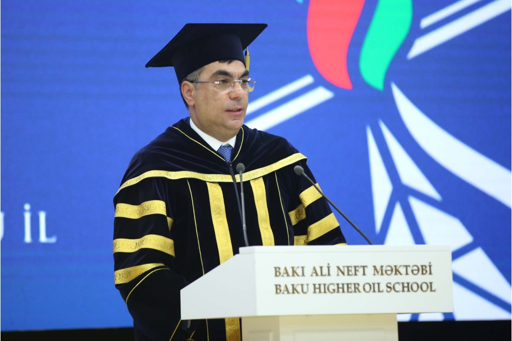 SOCAR-ın prezidenti Rövşən Nəcəf çıxışında məzunları, onların valideynlərini təbrik edərək, məzunların ölkəmizin inkişafına töhfə verəcəyinə, həmçinin SOCAR-ın qarşısına qoyduğu hədəflərə çatmaqda böyük rol oynayacağına əminliyini ifadə edib. Rövşən Nəcəf professor-müəllim heyətinə də təşəkkür edərək burada tələbələrin peşəkar kadr kimi yetişməsində onların əməyinin böyük rolu olduğunu vurğulayıb. SOCAR-ın prezidenti məzunlara uğurlar arzulayıb və sürətlə dəyişən dünyada daim inkişaf etməyi, öyrənməyi tövsiyə edib.