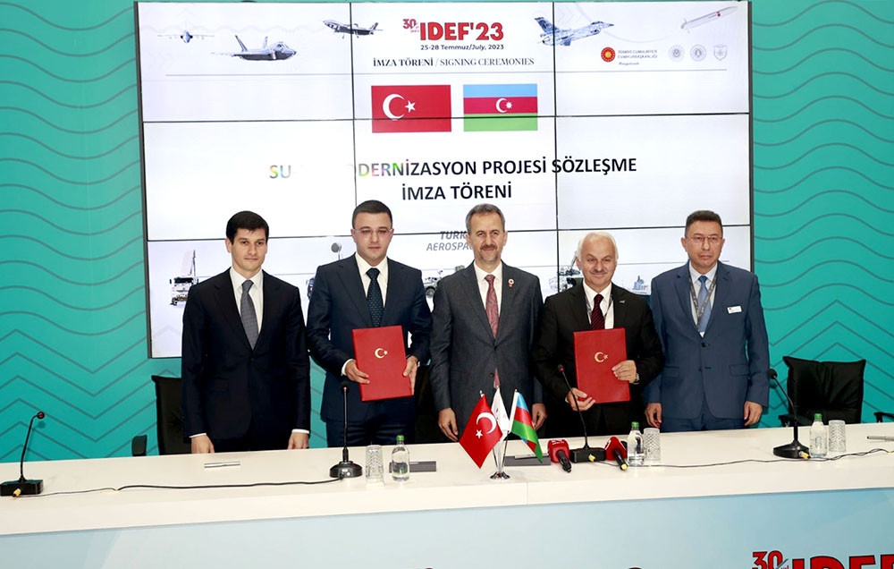 “İki sahil” Müdafiə Nazirliyindən verilən məlumata istinadən xəbər verir ki, “IDEF - 23” 16-cı Beynəlxalq Müdafiə Sənayesi Sərgisi çərçivəsində keçirilən imzalanma mərasimində Azərbaycan Respublikası müdafiə nazirinin müavini - Baş direktor Aqil Qurbanov, Türkiyə Müdafiə Sənayesi Komitəsinin sədri Haluk Görgün və digər rəsmilər iştirak edib.