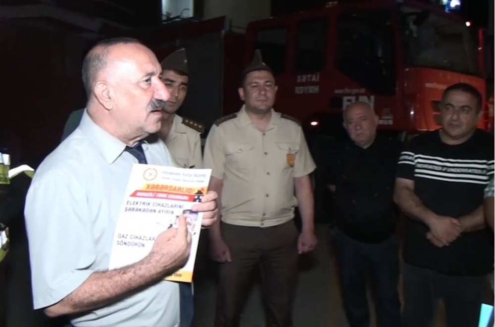 Fövqəladə Hallar Nazirliyinin Dövlət Yanğından Mühafizə və Dövlət Yanğın Nəzarəti xidmətləri Bakı şəhəri, Xətai rayonu, Məhəmməd Hadi küçəsi, 25T ünvanında yerləşən “Elnet” MTK-ya məxsus çoxmərtəbəli yaşayış binasında təlim keçirib.