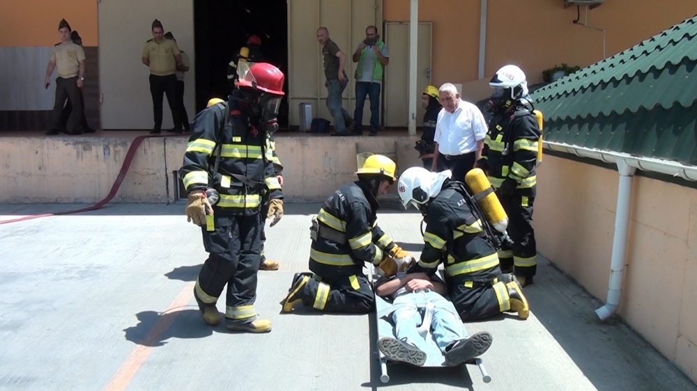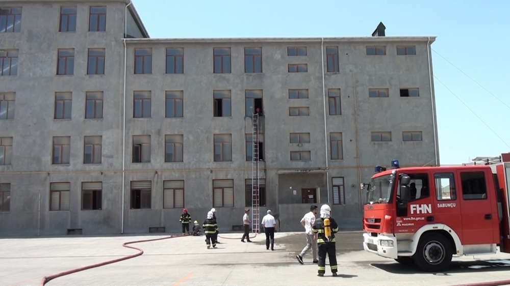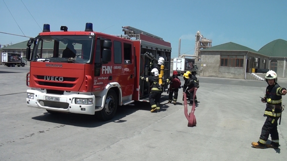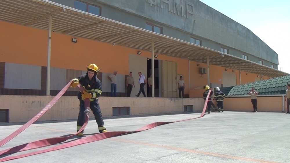 Təlimin praktiki hissəsində şərti yanğın zamanı “Həyəcan” siqnalı verildikdən sonra Sabunçu rayonu DYMH-nin 23 saylı Yanğından Mühafizə Bölməsinin yanğınsöndürənləri operativ qaydada hadisə yerinə çataraq, “yanğınla mübarizə” tədbirlərinə başlayıblar. Şərti yanğın baş vermiş anbar sahəsində təxliyə planına uyğun olaraq əməkdaşların təhlükəsiz yerə təxliyəsi həyata keçirilib, şərti xəsarət almış əməkdaşlara “ilkin yardım göstərilib”, şərti yanğın qısa müddətdə “söndürülüb”.