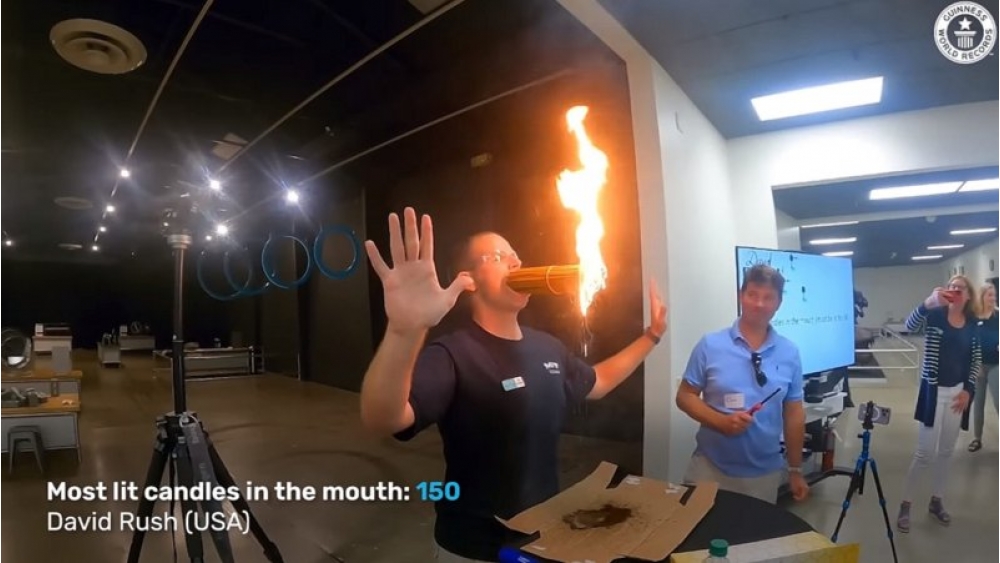 David Raş adlı oğlan bu il inanılmaz rekorda imza atıb. O, ağzında bir neçə saniyə ərzində 150 ədəd yanan şam saxlayaraq hər kəsin diqqətini özünə cəlb etməyi bacarıb.