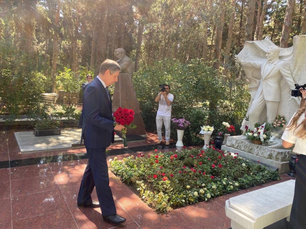 Qeyd edilib ki, səfir məzarın üzərinə əklil və gül dəstəsi qoyub.