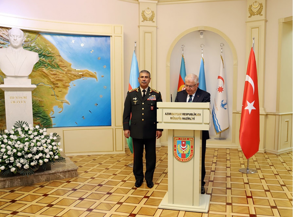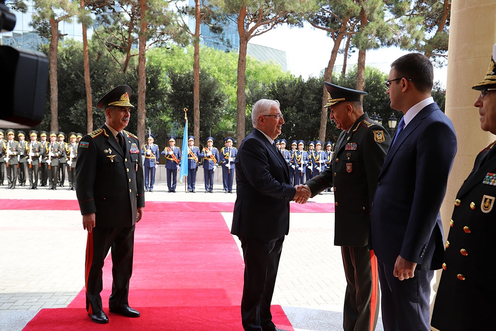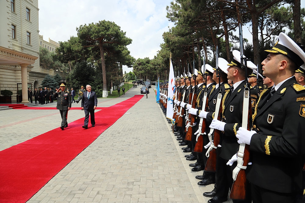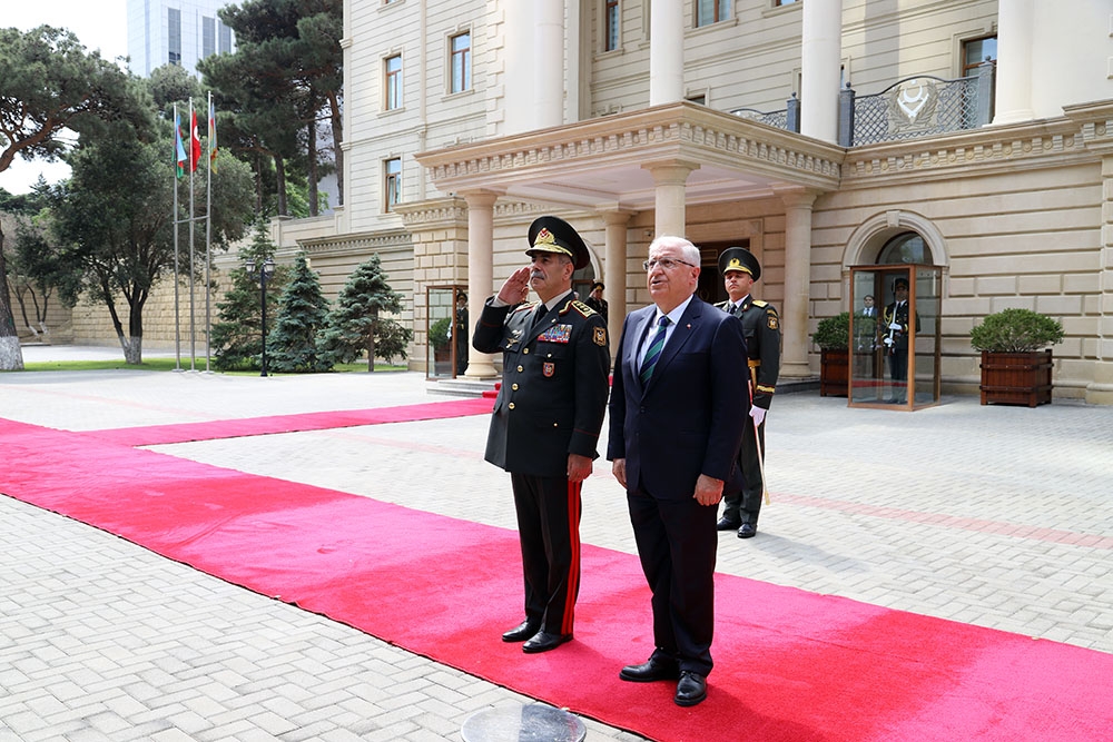 Bildirilib ki, sonra Müdafiə Nazirliyində təntənəli qarşılama mərasimi olub, hər iki ölkənin müdafiə nazirləri fəxri qarovulun önündən keçib. Müdafiə Nazirliyinin Nümunəvi Hərbi Orkestrinin ifasında Azərbaycan və Türkiyənin Dövlət himnləri səsləndirilib. Protokola uyğun olaraq “Şərəf kitabı” imzalanıb.