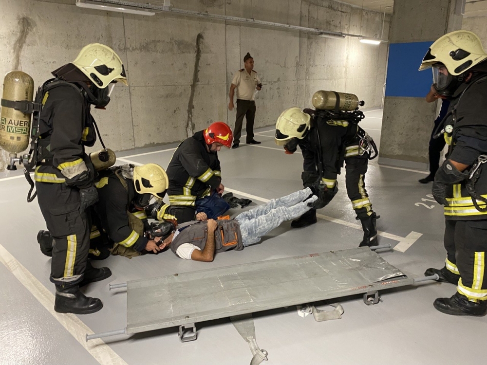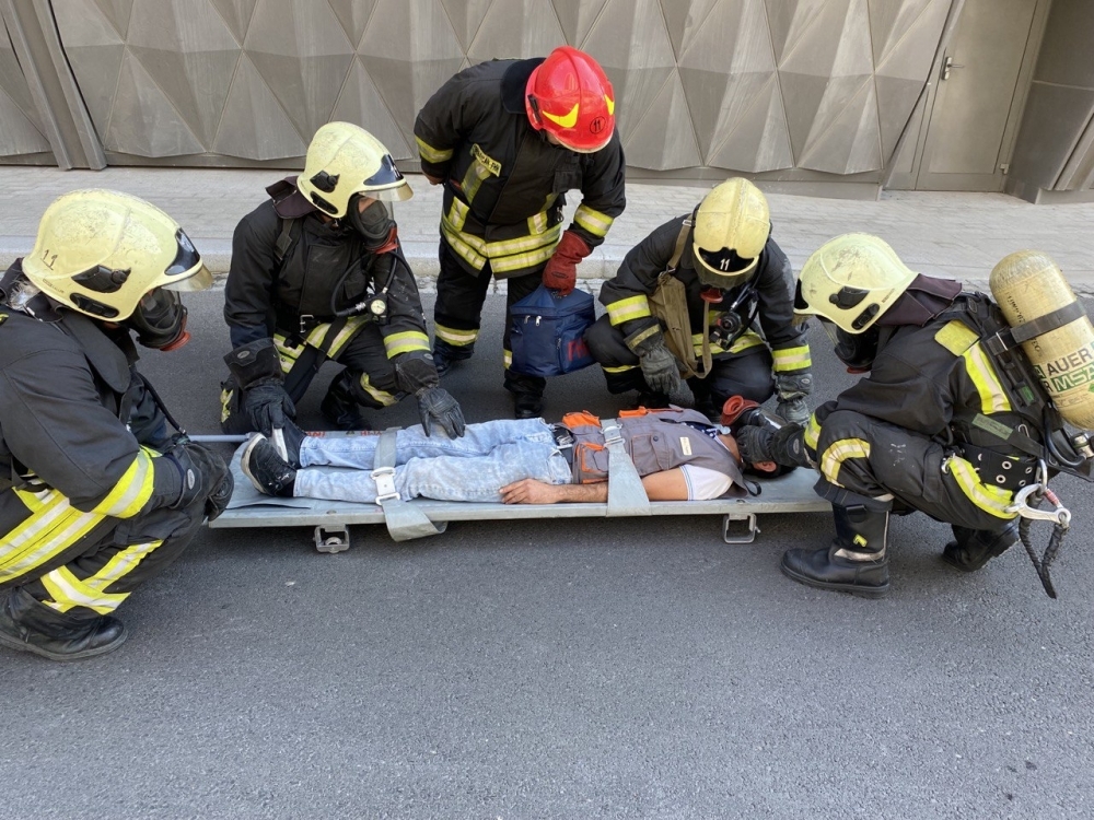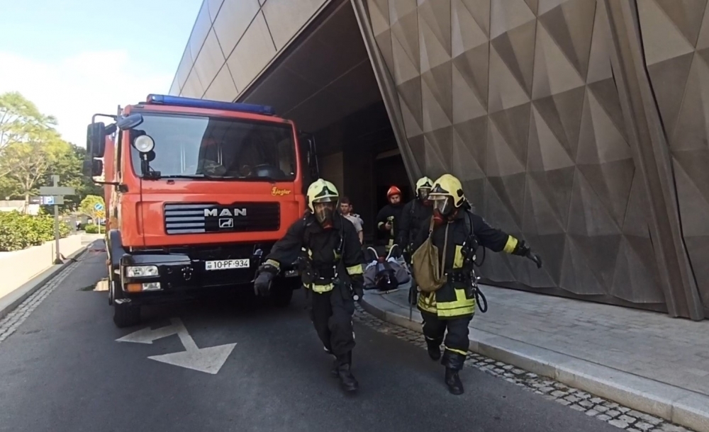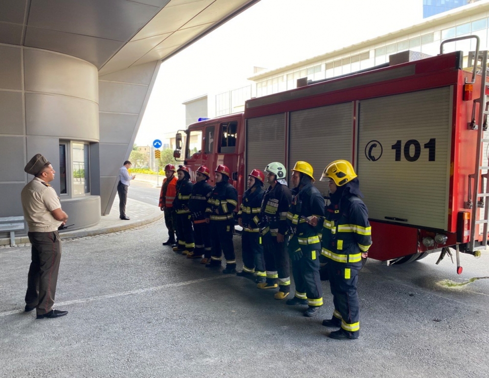 Təlim zamanı baş vermiş şərti yanğın yerinə operativ çatan FHN-in Dövlət Yanğından Mühafizə Xidmətinin ərazi yanğından mühafizə bölmələri işçilərin “təhlükəli ərazidən” təxliyə edilməsi, “yanğın” yerində çevik kəşfiyyatın aparılması və “yanğının söndürülməsi” əməliyyatını yerinə yetiriblər.