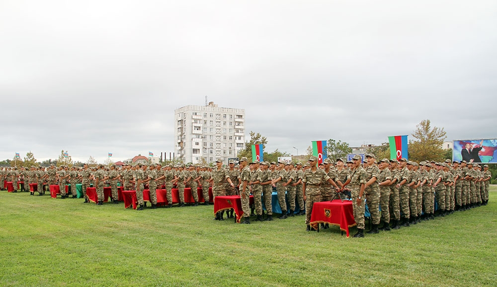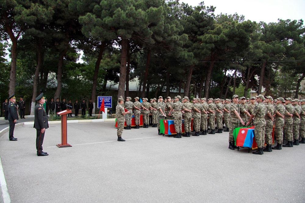 Sonra kursantlar təntənəli şəkildə Vətənə sədaqət andı içib, hərbi marşın sədaları altında tribuna önündən keçiblər.