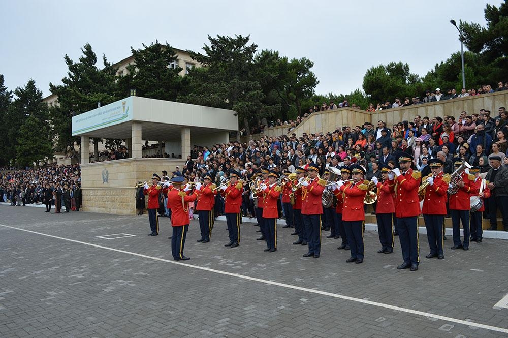 Hərbi orkestrin müşayiəti ilə kursantlar lisey marşını ifa edib, şəxsi heyətin təntənəli marşla tribunanın önündən keçidi olub.