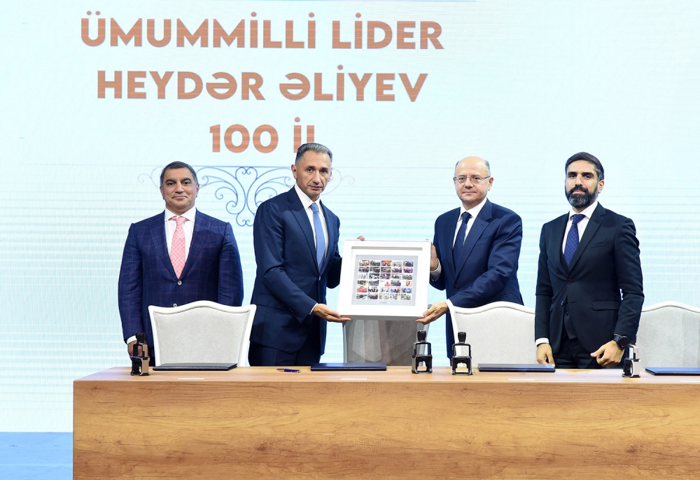 Tədbirdə “Heydər Əliyev İli” çərçivəsində Azərbaycan Respublikasının Rəqəmsal İnkişaf və Nəqliyyat Nazirliyinin və SOCAR-ın birgə təşəbbüsü ilə Ulu Öndərin 100 illik yubileyinə həsr olunan poçt markalarının dövriyyəyə buraxılması məqsədilə markaların möhürlənməsi mərasimi keçirilib. “Birinci gün” zərfləri Azərbaycan Respublikasının energetika naziri Pərviz Şahbazov, rəqəmsal inkişaf və nəqliyyat naziri Rəşad Nəbiyev, Azərbaycan İnvestisiya Holdinqinin baş icraçı direktoru Ruslan Əlixanov və SOCAR-ın prezidenti Rövşən Nəcəf tərəfindən möhürlənib.