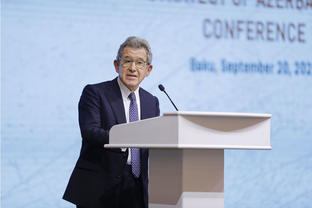 Tədbirin moderatoru, SOCAR-ın mətbuat katibi Orxan Hüseynov 29 il öncə “Əsrin müqaviləsinin” imzalanma prosesində iştirak edən, Ümummilli Lider Heydər Əliyevin 100 illik yubileyinə və “Neftçilər Günü”nə həsr olunan “Heydər Əliyev və Azərbaycanın yeni neft strategiyası” mövzusunda təşkil olunan konfransa fəxri qonaq qismində qatılan bp şirkətinin sabiq baş icraçı direktoru Lord Con Filip Braun, həmçinin Equinor şirkətinin Azərbaycan üzrə keçmiş prezidenti Tor-İvar Pederseni salamlayıb və onları tədbir iştirakçılarına təqdim edib.