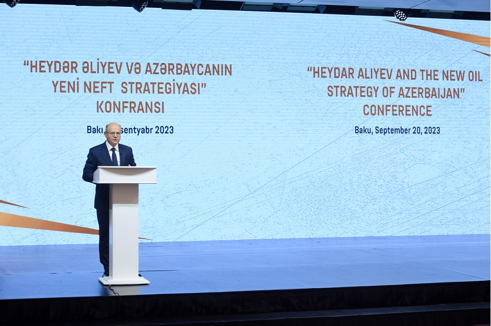 Energetika naziri Pərviz Şahbazov Ulu Öndər Heydər Əliyevin neft strategiyasının töhfələri olan layihələrin hər birinin bu gün ölkəmizin və tərəfdaşlarımızın enerji təhlükəsizliyinin, iqtisadi uğurlarımızın mühüm mənbələri olduğunu diqqətə çatdırıb. Nazir ölkəmizdə neft hasilatının 63%-ni təşkil edən Azəri-Çıraq-Günəşli və əmtəəlik qazın, təxminən, 70%-nin hasil olunduğu “Şahdəniz” yataqlarından indiyə kimi 580 milyon ton neft, 43 milyon ton kondensat çıxarıldığını, 621 milyon ton neft-kondensat həcmlərinin ixrac olunduğunu vurğulayıb. Pərviz Şahbazov “Şahdəniz” yatağından hasil edilən 202 milyard kubmetr qazın isə 143 milyard kubmetrinin xarici bazarlara nəql edildiyini bildirib. Energetika naziri gözlənilən tələbat, etibarlı və təhlükəsiz təchizat marşrutlarına üstünlük verilməsi səbəbindən Azərbaycanın neft-qaz resurlarının uzun müddət bir çox ölkələr üçün prioritet olacağını qeyd edib. Nazir bu xüsusda, AÇG-nin 2050-ci ilədək işlənilməsi ilə bağlı tərəfdaşlarımızla ortaq mövqeyin nəinki ölkəmizdə neft hasilatında, həmçinin tədarük çatışmazlığının yaşandığı enerji bazarlarında sabitlik üçün də önəmli olduğunu vurğulayıb.