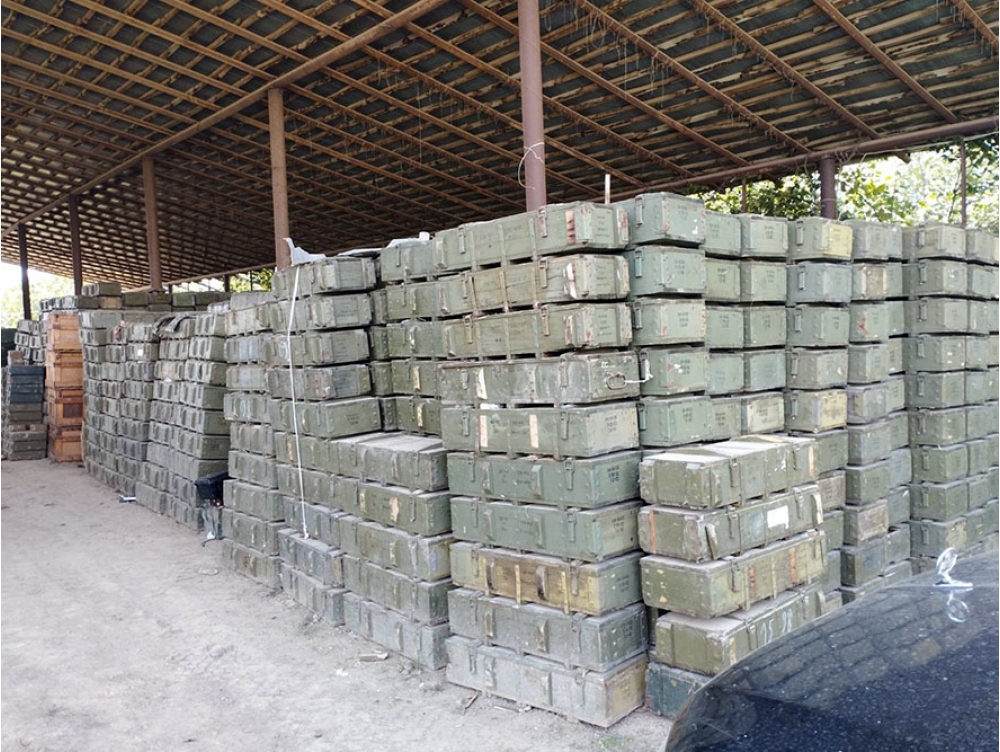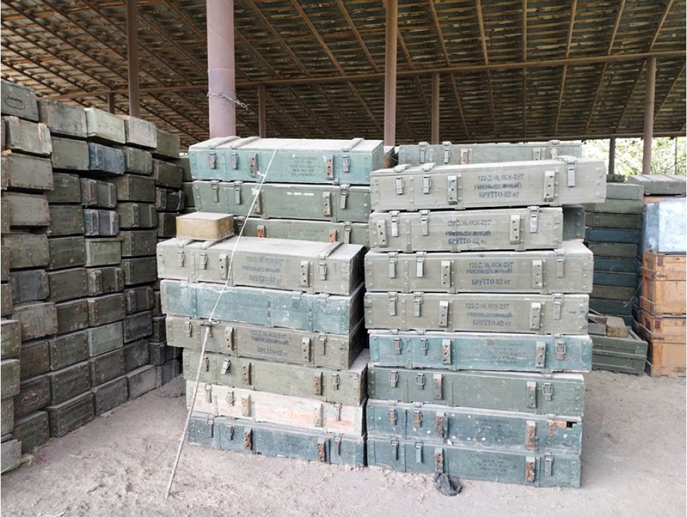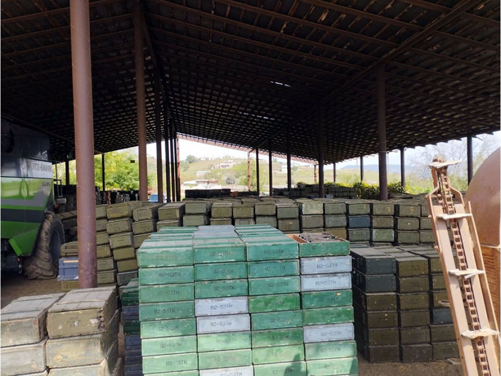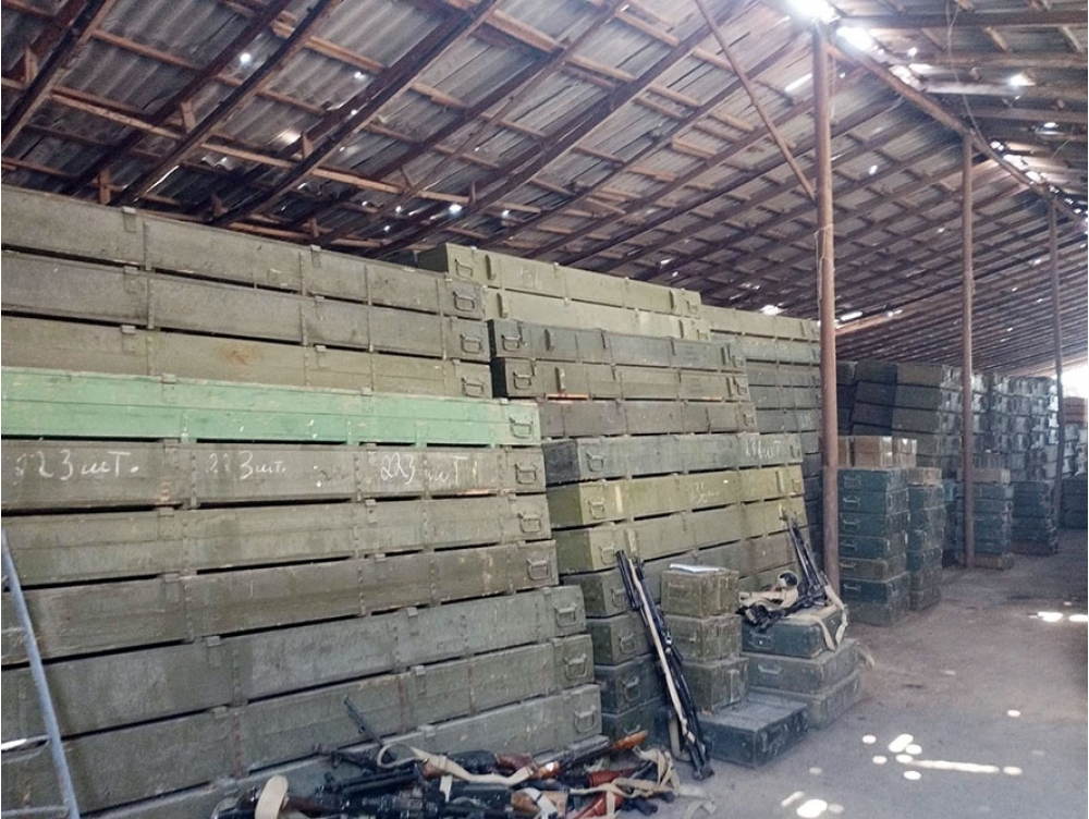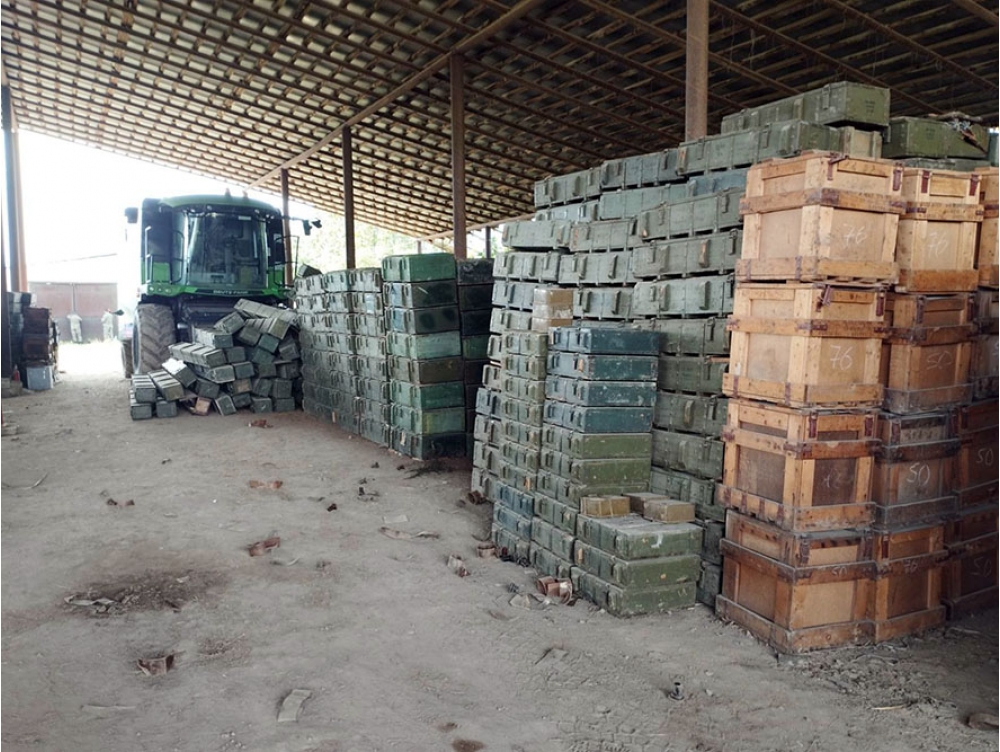 Bildirilib ki, xeyli sayda raket, artilleriya mərmiləri və minalar olan anbarda, həmçinin müxtəlif çaplı döyüş sursatları da aşkar edilib.