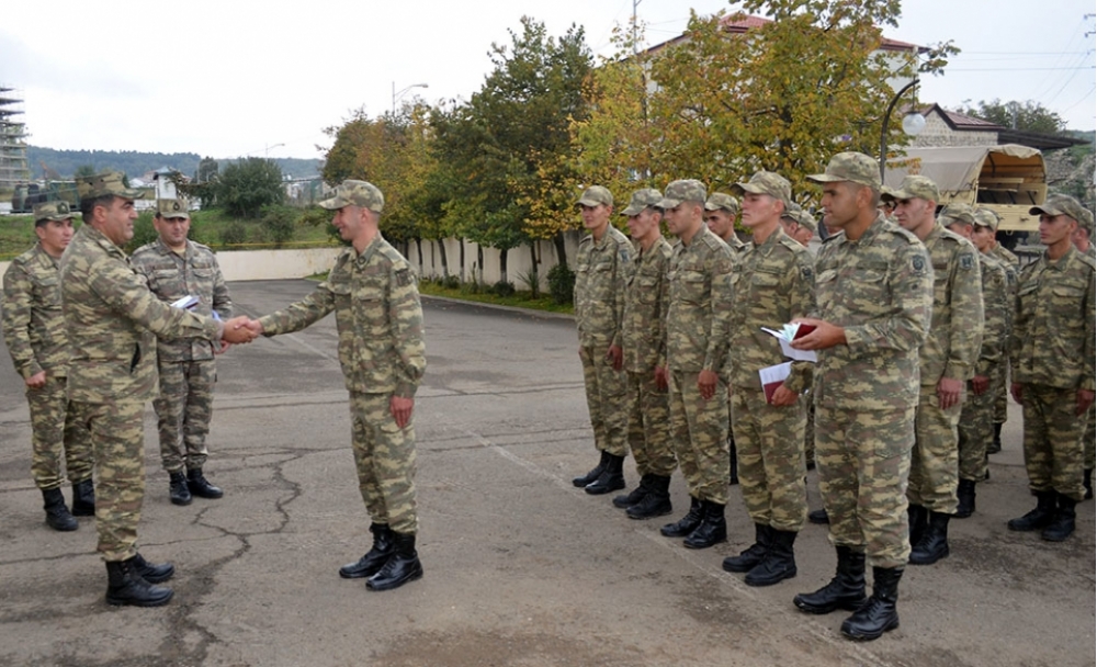 Azərbaycan Ordusunun hərbi hissələrində müddətli həqiqi hərbi xidmət müddəti başa çatmış bir qrup hərbi qulluqçunun tərxis edilməsi ilə əlaqədar tədbirlər keçirilib.