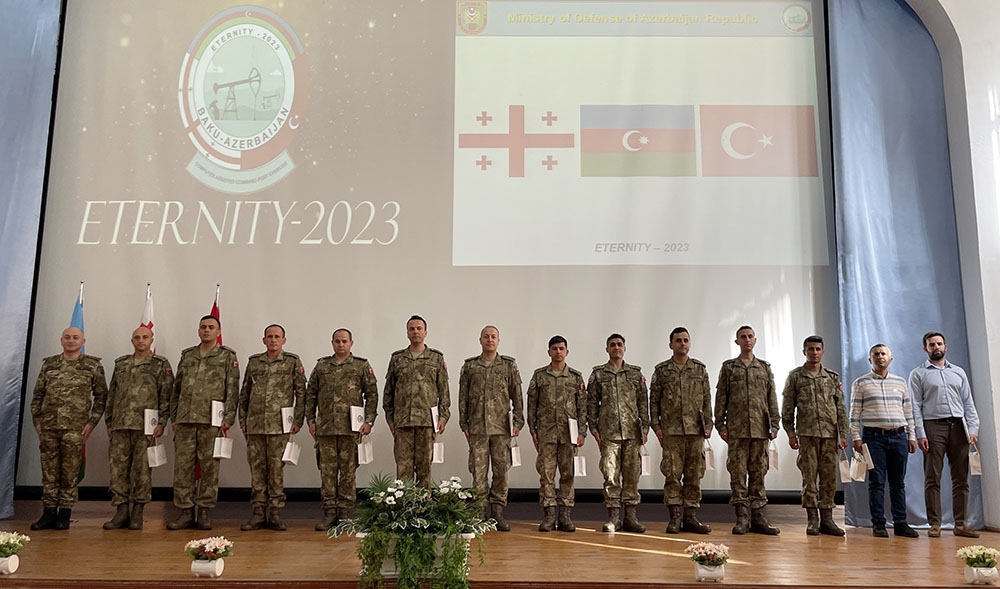 Azərbaycan, Türkiyə və Gürcüstanın hərbi qulluqçularının iştirakı ilə Bakıda keçirilən “Eternity-2023” kompüter dəstəkli komanda-qərargah təlimi başa çatıb.