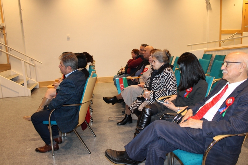 “İki sahil” xəbər verir ki, tədbirdə Azərbaycan Respublikasının Skandinavia ölkələrindəki fövqəladə və səlahiyyətli nümayəndəsi səfir Zaur Əhmədov iştirak edib. Tədbir Azərbaycan Respublikasının Dövlət Himninin səsləndirilməsi ilə açıldı. Daha sonra Şəhidlərimizin ruhu bir dəqiqəlik sükutla yad edildi.