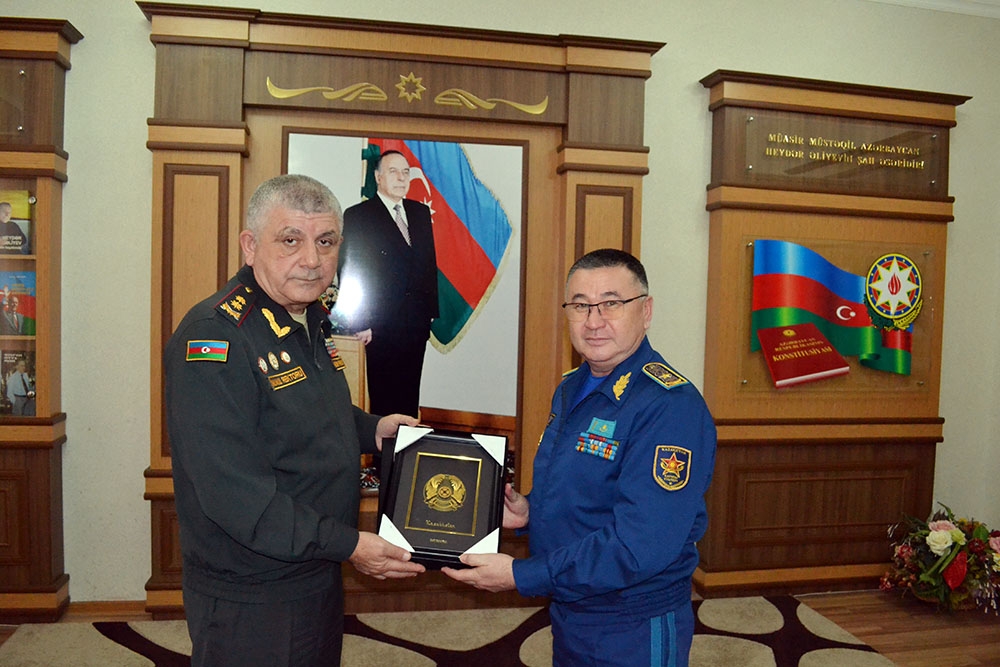 Milli Müdafiə Universitetinin rektoru professor, general-leytenant Heydər Piriyev ölkəmizdə səfərdə olan Qazaxıstan Respublikasının Müdafiə Nazirliyinin Hərbi Təhsil və Elm Departamentinin rəisi general-mayor Jumabek Axmetov ilə ölkələrimiz arasında hərbi təhsil sahəsində əməkdaşlığın cari vəziyyəti və inkişaf perspektivlərini müzakirə ediblər.