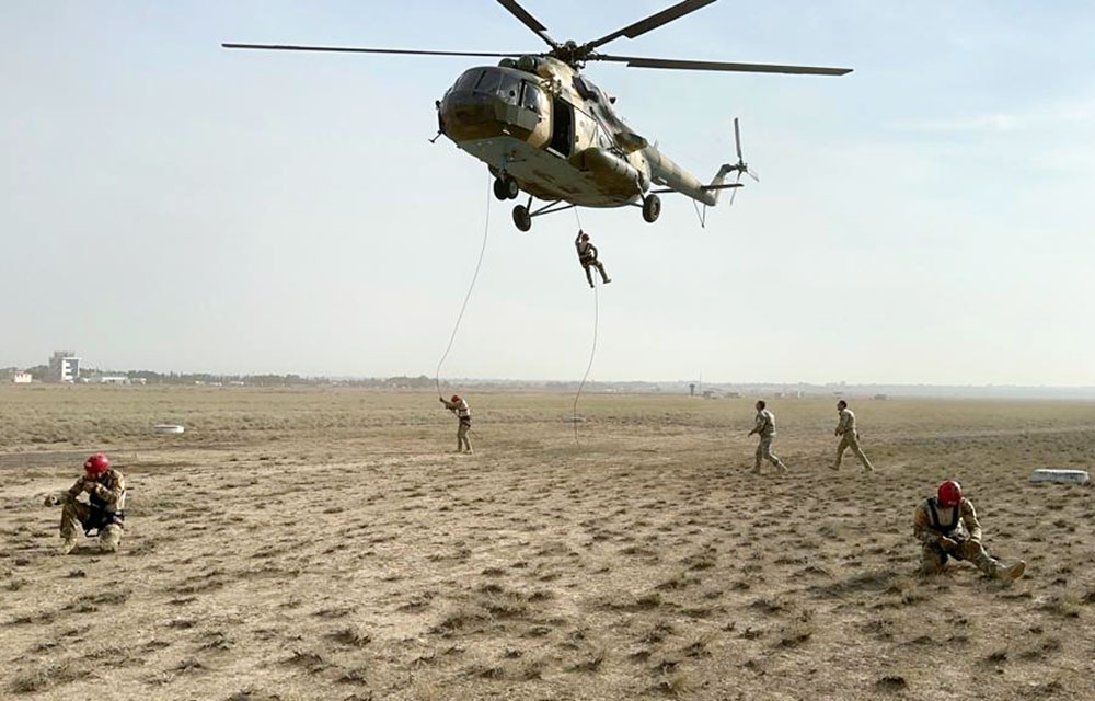 Azərbaycan Ordusunun ümumqoşun poliqonlarının birində Hərbi Dəniz Qüvvələrinin sualtı hücum xüsusi təyinatlılarının hava desant hazırlığı toplanışı keçirilib.