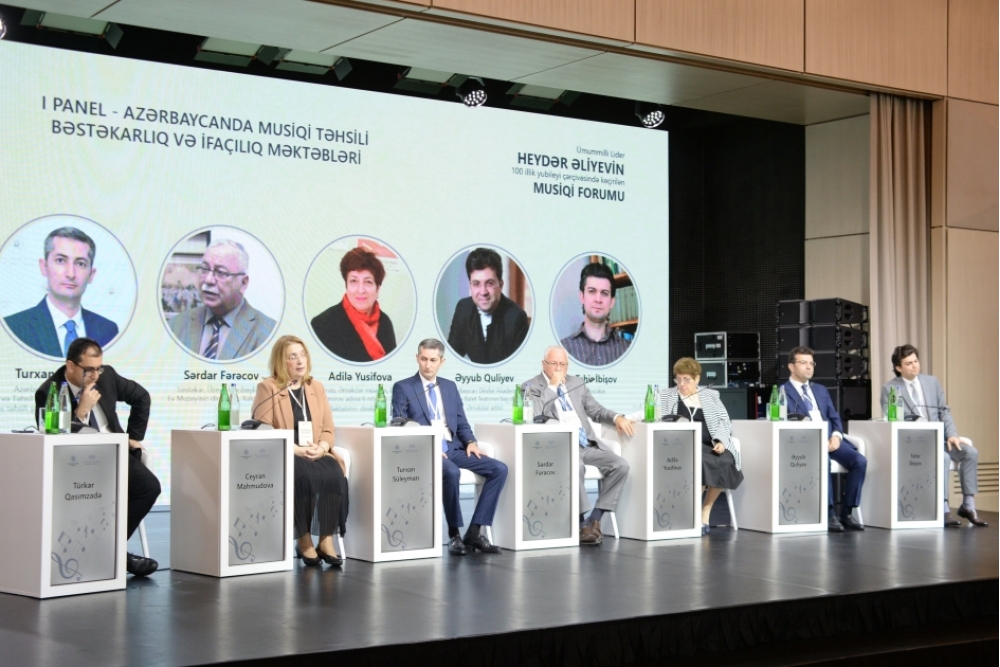 Spikerləri Azərbaycan Dövlət Mədəniyyət və İncəsənət Universitetinin rektoru, professor Ceyran Mahmudova, Elm və Təhsil Nazirliyinin Elm, ali və orta ixtisas təhsili şöbəsinin Elm sektorunun müdiri Turxan Süleyman, Üzeyir Hacıbəylinin ev-muzeyinin direktoru, bəstəkar, Xalq artisti Sərdar Fərəcov, Bakı şəhəri Fikrət Əmirov adına 6 nömrəli Onbirillik Musiqi Məktəbinin direktoru, professor Adilə Yusifova, Azərbaycan Dövlət Akademik Opera və Balet Teatrının baş dirijoru, Əməkdar artist Əyyub Quliyev, bəstəkar Tahir İbişov olan paneldə qeyd edilən mövzular ətrafında fikir mübadiləsi aparılıb, mövcud problemlərim həlli yolları araşdırılıb və Forum iştirakçılarının sualları cavablandırılıb.