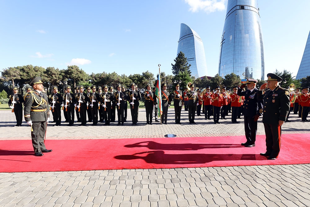 Sonra Azərbaycan Ordusunun Baş Qərargahında təntənəli qarşılama mərasimi keçirilib.