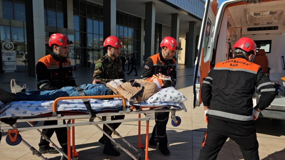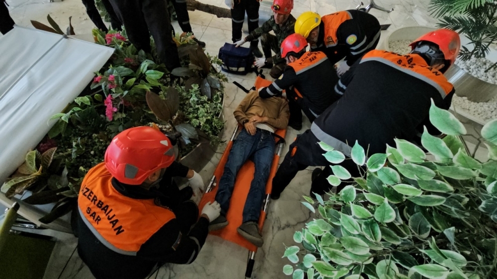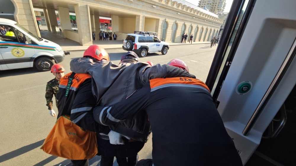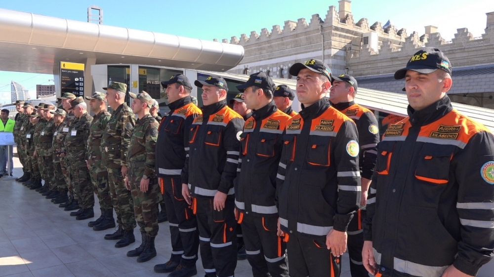 Təlim ssenarisinə uyğun olaraq, Bakı Dəmiryol Vağzalında paytaxt ərazisində baş vermiş şərti zəlzələnin nəticələrinin aradan qaldırılması əməliyyatının əməliyyat simulyasiyası edilib.