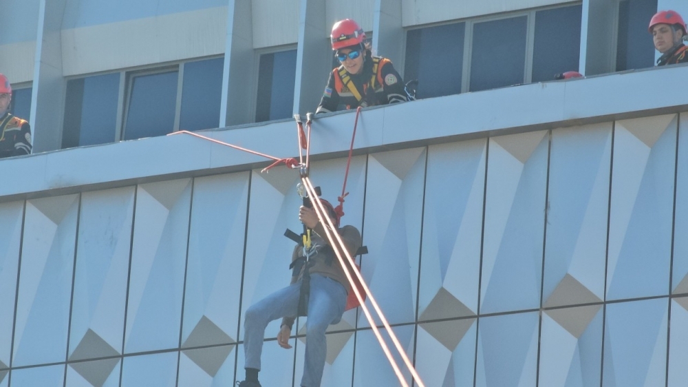 Belə ki, Bakı şəhəri ərazisində baş vermiş şərti zəlzələnin nəticələrinin aradan qaldırılması məqsədilə hadisə yerinə FHN-in Bakı Regional Mərkəzinin və Xüsusi Riskli Xilasetmə Xidmətinin xüsusi təyinatlı texnikaları və şəxsi heyəti ilə yanaşı, xüsusi təlim görmüş itlər, ADY-nin mülki müdafiə qüvvələri, o cümlədən 2 yanğınsöndürən qatar və müvafiq nəqliyyat vasitələri cəlb olunub.