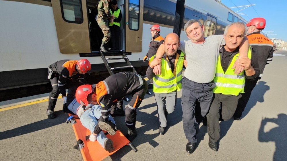 Fövqəladə Hallar Nazirliyinin Bakı Regional Mərkəzi və “Azərbaycan Dəmir Yolları” QSC Bakı Dəmiryol Vağzalında birgə xüsusi təlim keçirib.