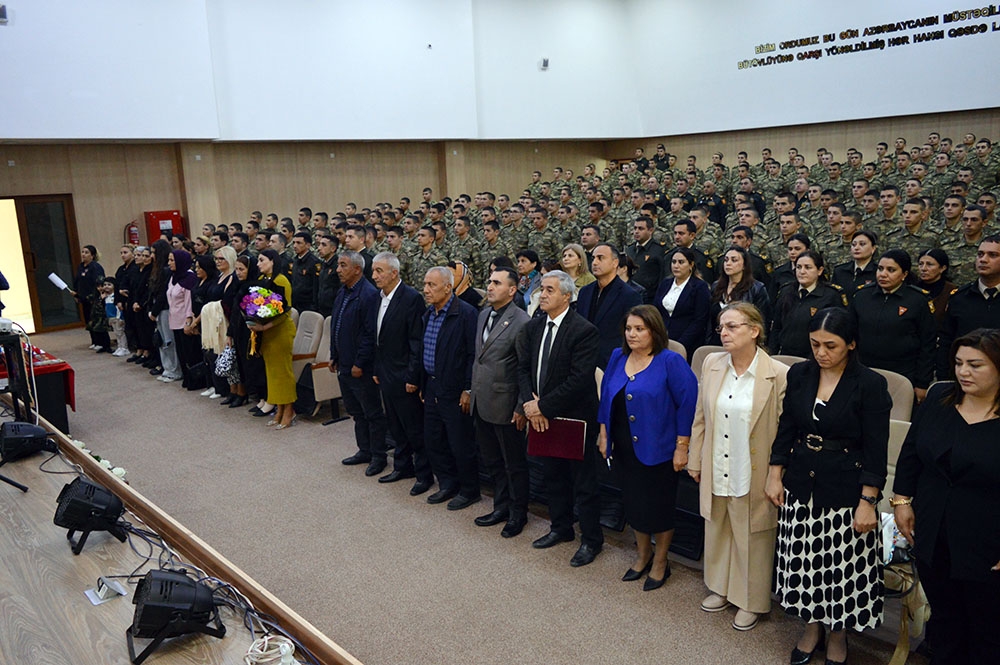 Əvvəlcə Ulu Öndər Heydər Əliyevin və ölkəmizin ərazi bütövlüyü uğrunda şəhid olanların xatirəsi bir dəqiqəlik sükutla yad olunub. Hərbi orkestrin müşayiəti ilə Azərbaycan Respublikasının Dövlət Himni səsləndirilib.