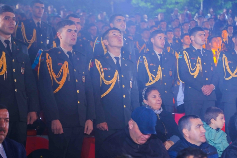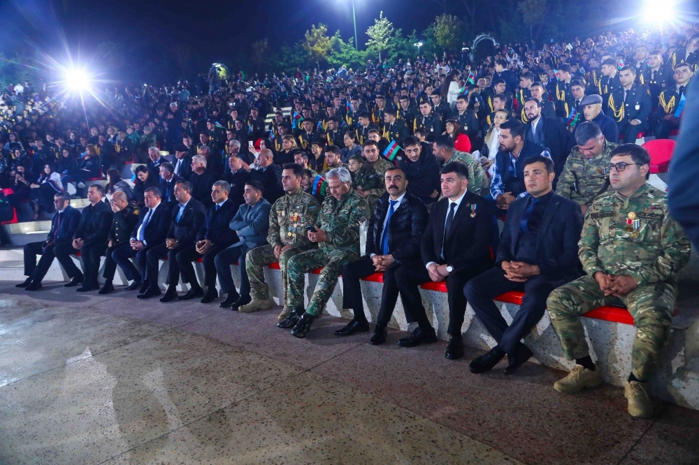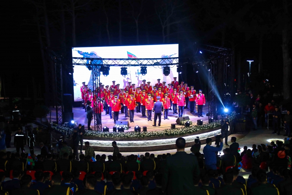 Sonra isə Respublikanın tanınmış mədəniyyət və incəsənət nümayəndələrinin iştirakı ilə bədii-musiqili proqram təqdim edildi. İncəsənət ustaları -Ağadadaş Ağayev, Gülyaz və Gülyanaq Məmmədova, Ədalət Şükürov, İzzət Bağırov, İlhamə Qasımova, Azər Zeynallının ifasında vətənpərvərlik mövzusunda bir-birindən maraqlı ifalar izləyicilərə təqdim olundu.
