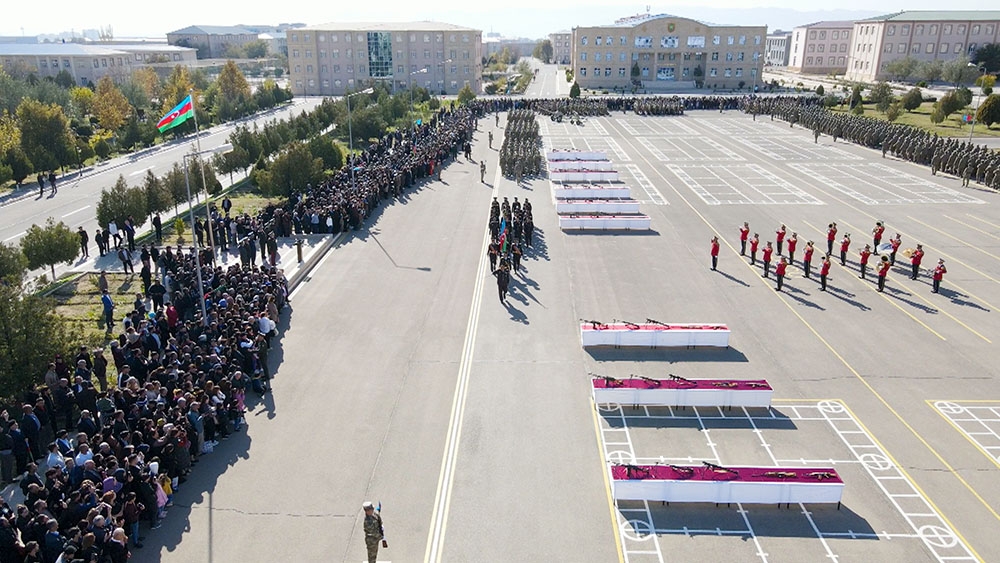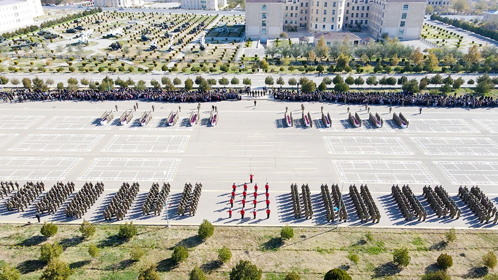 Şəxsi heyətin tribuna önündən təntənəli keçidi ilə mərasim başa çatıb.
