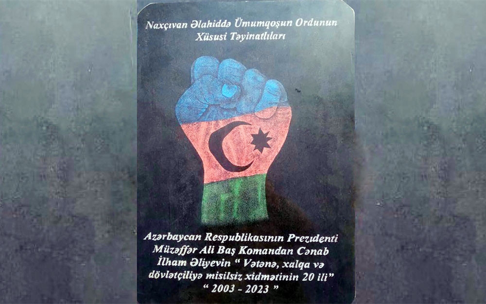 Çətin dağ aşırımlarından keçərək Ordubad rayonu ərazisində yerləşən və hündürlüyü 3905 metr olan Qapıcıq zirvəsinə qalxan xüsusi təyinatlılar Azərbaycan Respublikasının Prezidenti, Müzəffər Ali Baş Komandan cənab İlham Əliyevin Vətənə, xalqa və dövlətçiliyə misilsiz xidmətinin 20 ilini tərənnüm edən və üzərinə dəmir yumruğun əks olunduğu lövhəni qaya üzərində bərkidiblər.